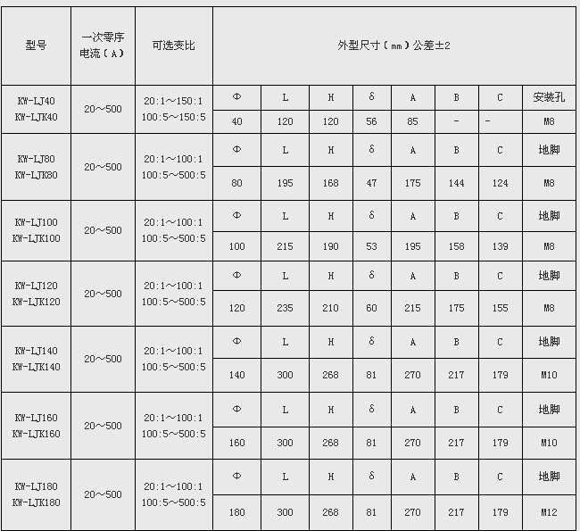 產(chǎn)品名稱(chēng): KW-LJ系列零序電流互感器